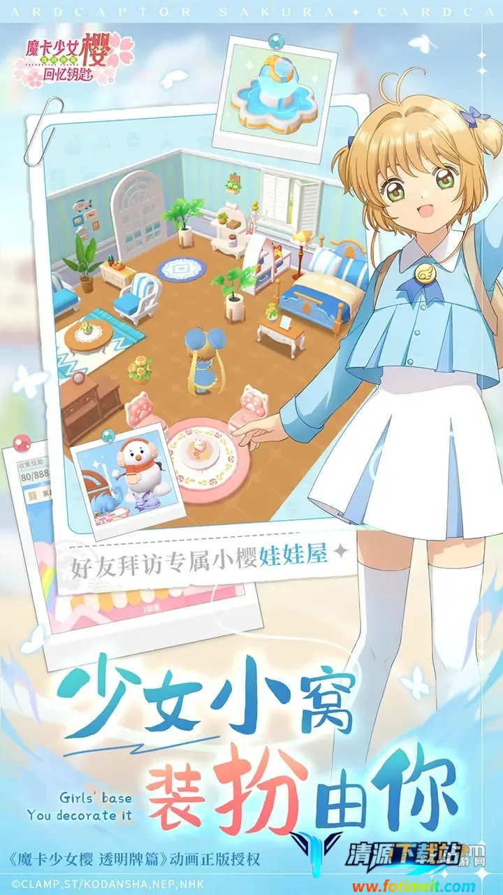 2. 丰富玩法:能扮演小樱收集魔法卡牌、解谜、战斗,还可收集小小樱解锁上百套娃娃造型,养成小小樱解锁专属 pose,装修娃娃屋打造个性房间,更有大量 CG 可收藏。