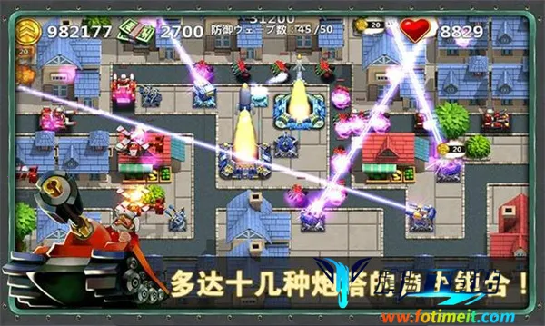 这款游戏有着丰富多样的玩法。可建造多达16种类型的防御塔,如加特林机枪塔、火箭炮塔等,还能使用多种超级武器,像空袭、核弹等,对敌人造成巨大伤害。敌人类型和数量不断增加,需选择合适的防御塔和武器组合,炮台还能装配功能模块增强属性。联网模式下,能与其他玩家互动结盟、合作挑战,也可通过排行榜竞争。