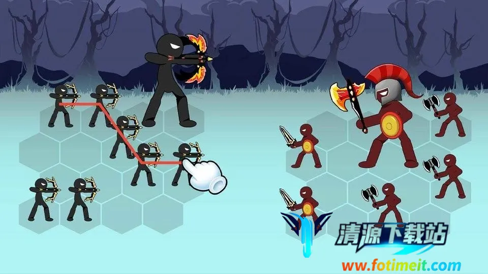 火柴人战争合并大师中,玩家要从简单士兵成长为棍棒战士,通过合并战士攻击残暴将军及其好战军队。任务是想出多种合并棍棒人的计划来击败对手,尽快合并单位才能成为最强。