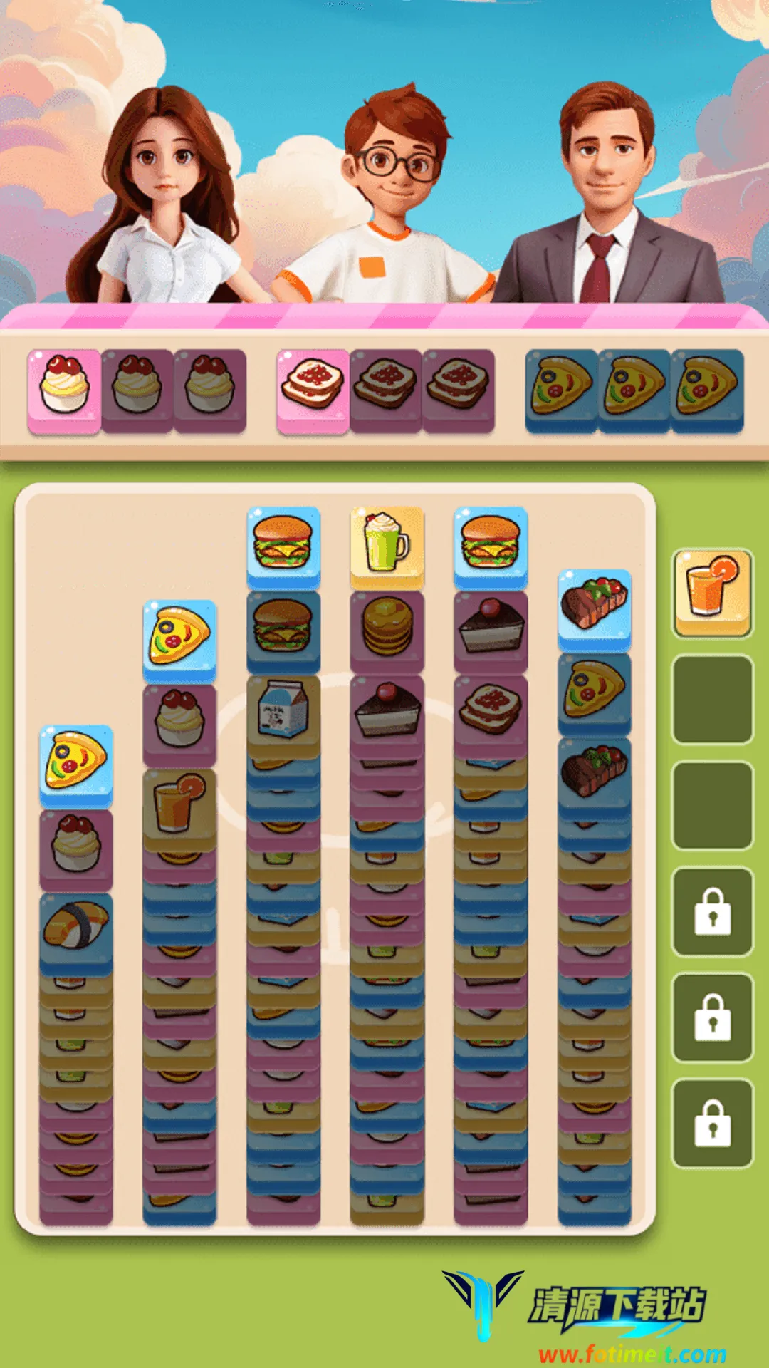 如果你想找一款有趣的美食题材游戏,那美食方块类游戏就很适合你。它是竖版益智休闲小游戏,以美食卡牌为题材,玩的是三消玩法。游戏有不错的场景设置,主界面是三层餐厅建筑,你能通过玩游戏获取金币建设餐厅。游玩界面是核心玩法区,每次有三个客人出现,每个客人需要三张相同食材卡。下方有多列食材卡牌叠加的卡柱,点击卡柱选取最上层卡牌,若符合客人要求就飞到客人下方,不符则先到公共等待区。满足客人需求就能消除卡牌。这种玩法既能锻炼你的策略思维,又能让你在消除卡牌的过程中感受乐趣。而且通过经营餐厅,能满足你对美食经营模拟的想象,让你体验不一样的游戏快感,轻松休闲又好玩,快来试试吧!