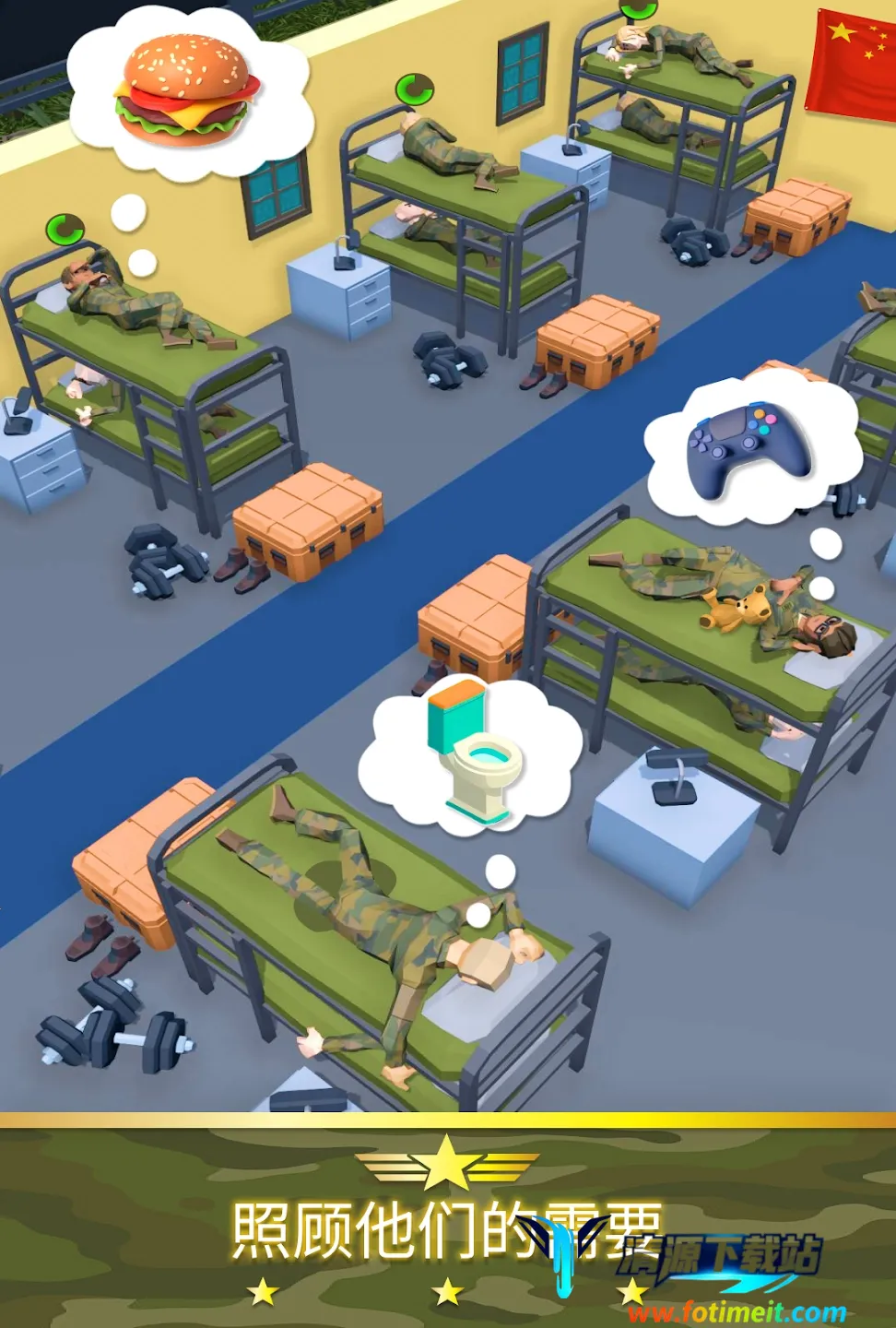 2. 深度的士兵培养:能将新兵训练成经验丰富的老兵,提升他们技能,解锁先进操练技术,见证士兵成长为强大力量。