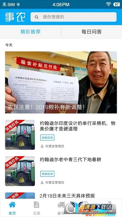 这款农业软件功能丰富。它能与农业设备配合,实现土地测量、农机实时监控等。操作员可在线下单接单,保存操作记录。亮点是支持飞行和定时模式,一键切换作业机械。还提供问答及农业政策推送。新二手农机买卖咨询方便,车辆随时可见,有专享优惠。能全方位选车,掌握补贴查询。农事记录可科学管理,帮农民估算用肥用药量等。农机手干活测量准确,记录云端存储。信息服务涵盖土地、劳动力雇佣报价等。软件特色包括作业面积实时核算、高精度硬件支持、农机作业预警等,为农户提供了便捷管理工具,是一款实用的农业软件。