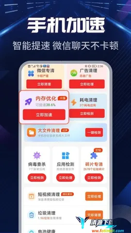 2. 双重保障:不仅能精准定位并清理各类无用垃圾文件,实现手机深度清理,还搭载病毒查杀功能,彻底清除手机病毒隐患,守护手机安全。