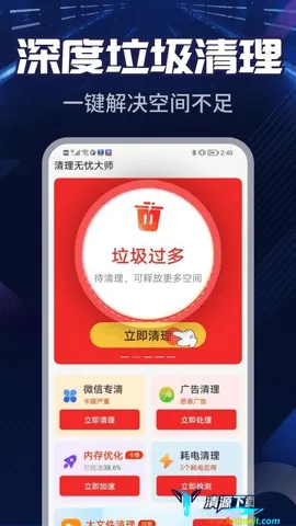 清理无忧大师2026官方最新版本是专注手机清理优化的工具,智能扫描一键清垃圾,释放空间内存,适配多场景。还能定期自动清理,兼具病毒查杀功能,操作简单,适合各类有手机清理需求人群。