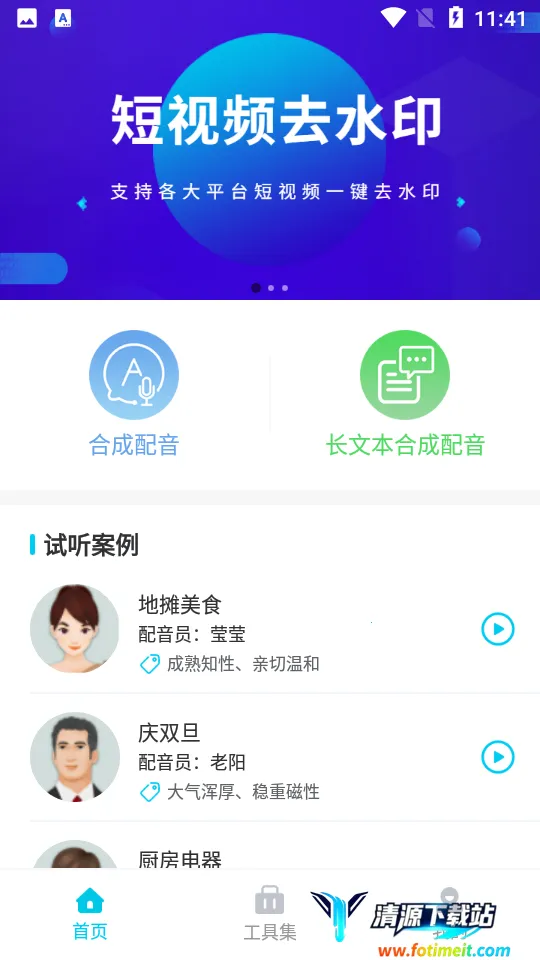 如果你想找国语配音相关软件,那配音吧app绝对值得拥有!它能帮你轻松解决配音难题。软件功能超强大,输入文本就能秒变语音,快速合成流畅清晰自然的语音,超长文本也不在话下。有男声、女声、童声、方言、英文等各种风格发音人任你选,满足多样需求。还有海量广告模板,像彩铃、地摊叫卖、超市珠宝等场景的都有。支持音频裁剪、拼接、音量调节、混音、格式转换等编辑操作,还能提取视频音频、给短视频去水印。能导出音频mp3,通过多种方式分享。可试听真人样音选配音员定制配音,背景音丰富免费下载,各行业文案模板任你挑选。不管是广告促销、有声阅读还是广播类场景,它都能完美适配,让你的配音工作轻松又高效,快来下载体验吧!