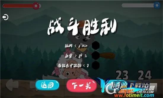 攻略方面,点击开始选人物就能玩,移动人物挥动武器开打。战斗胜利能看到耗时、血量和击中次数,点击下一关挑战新角色,失败可重开。游戏技巧也很关键,熟悉角色技能特点和释放方式,灵活走位躲攻击,根据场景敌人选合适武器,比如面对速度快防御弱的敌人用短剑匕首,遇防御力高的大型敌人用大锤长枪。快来体验这场欢乐刺激的狼羊生存斗争吧!