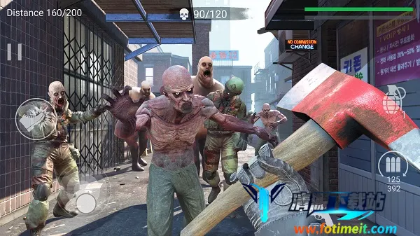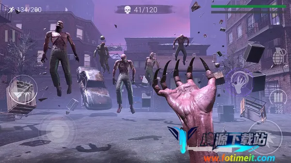 切勿让僵尸近身,如果实在没有办法,可通过左侧的脚蹬按钮,踢退僵尸。