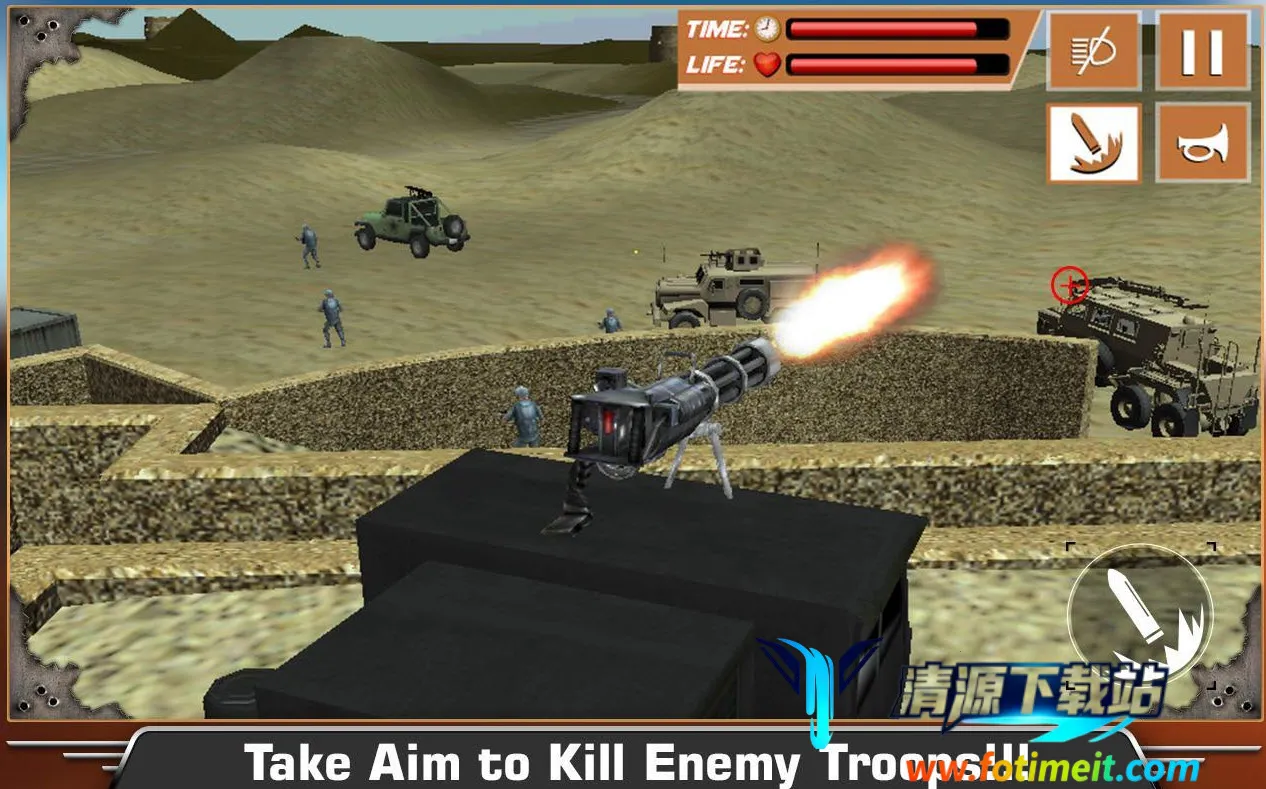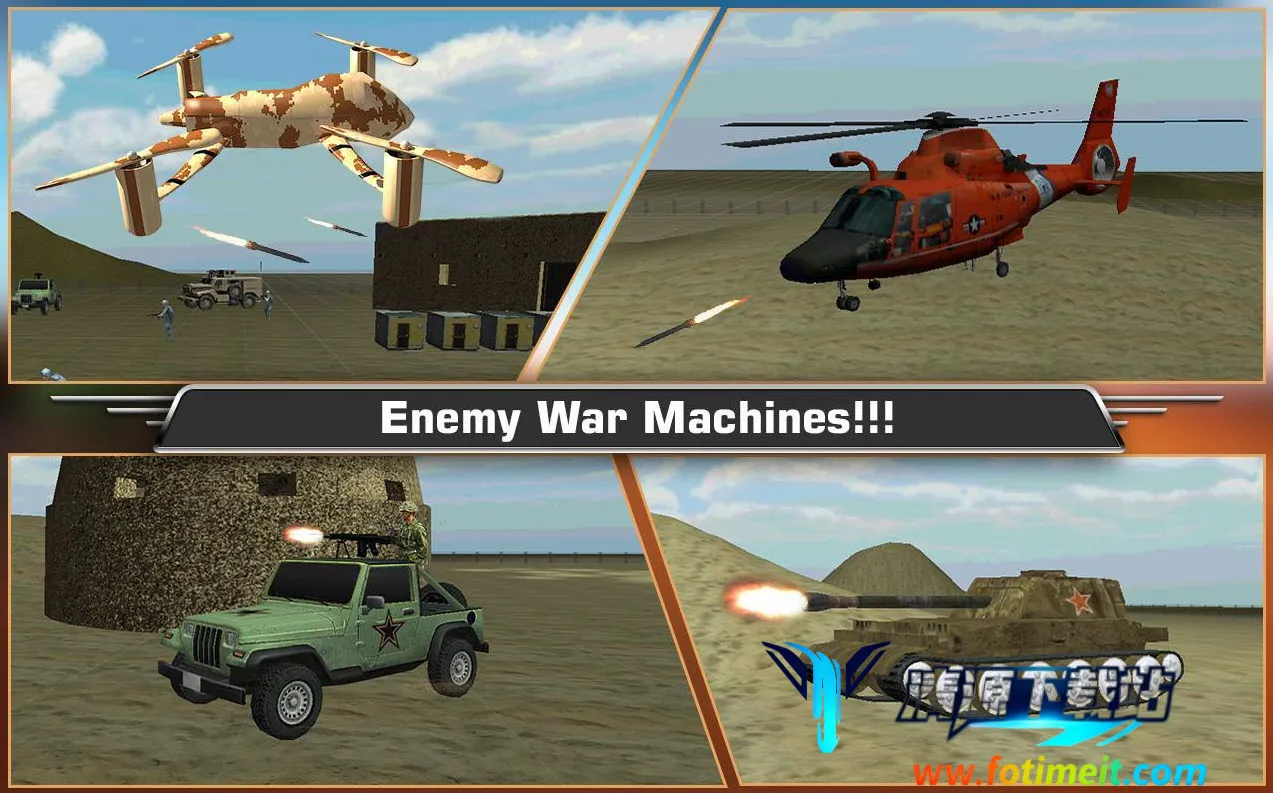 这款游戏能让玩家体验驾驶各种战争武器的滋味,感受越野、射击、开炮等动作。玩家可驾驶越野军用卡车在沙漠中驰骋,进入敌后攻击敌人阵容,包括直升机、坦克、无人驾驶飞机和军队车队。游戏提供3D模拟和动作丰富的新体验,还有4强大战争机器,配备机枪武器。15个具有挑战性的任务可提升驾驶和射击技能,大型开放式世界地图带来广阔体验空间。完美的驱动控制,动力方向盘、加速踏板和刹车踏板操作自如,战斗模式下炮手控制和火力惊人,还有真棒高清游戏体验与精湛声音,带来实时战场感受。