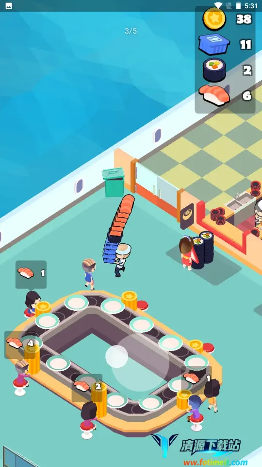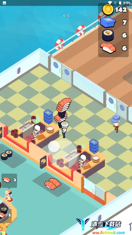 这款模拟经营游戏内容贴合主题,玩法出色。闯关式玩法保留模拟经营核心元素,带来不断挑战感。画风清新,音乐动听,沉浸感十足。玩家按顾客需求选食材做寿司再上菜,完成关卡推进。每个关卡有经营目标,完成可获资源奖励升级设备、解锁配方、扩大店面。在玩法上,找到带5标识区域获资源,靠近目标区域互动钓鱼取食材,放物品到对应区域积累食材。能尝试多款寿司搭配,制作调料,用丰富食材做美味寿司。当寿司更美味,顾客会更多,完成任务还能赢奖励,整体十分值得一玩。