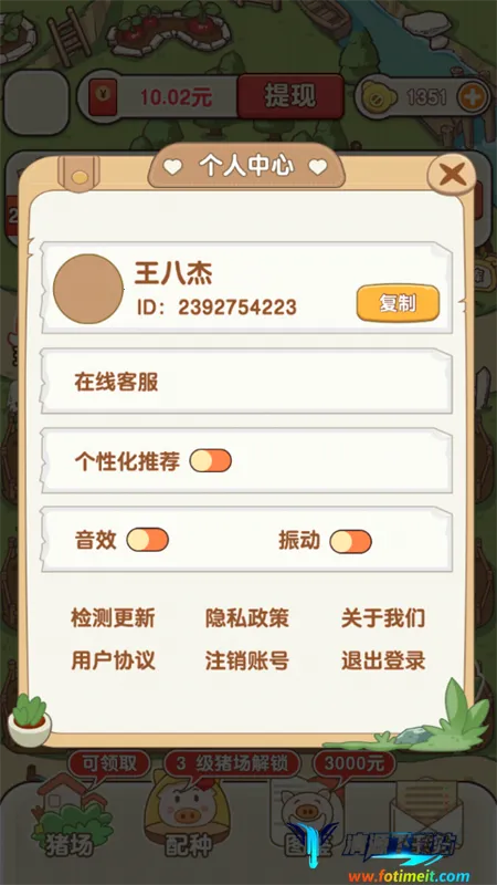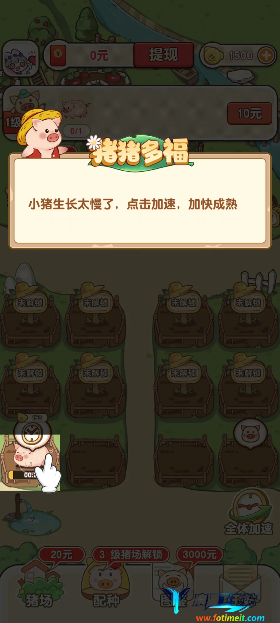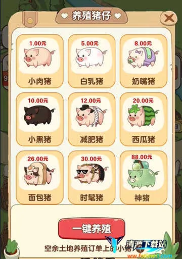 3、小猪成长进阶:从最初的小猪开始悉心培育,随着时间推移,小猪会成长为更高级的猪,能为玩家带来更多收获与奖励。