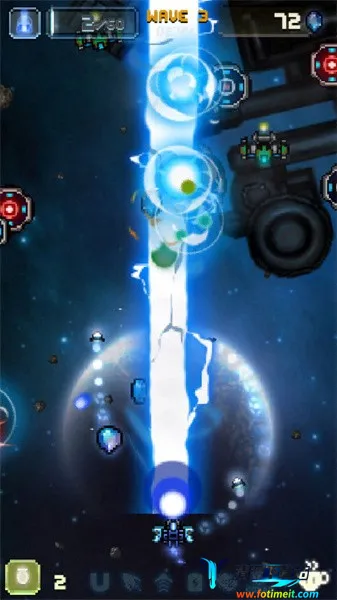 4. 玩法模式多样:游戏玩法丰富,有多种战斗模式,玩家操控战机迎战100波敌军,战斗推进时背景画面变换,空中俯瞰视角可览太空美景。