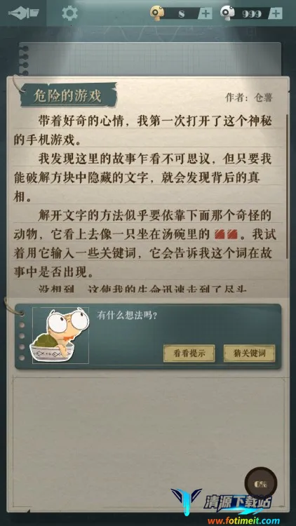 如果你正在寻找一款刺激又烧脑的悬疑推理游戏,海龟蘑菇汤绝对值得一试!这是一款没有预设问题和选项的游戏,你需要根据证人的口供、证物以及案发现场的布置来寻找蛛丝马迹,深挖故事真相。游戏以互动解谜玩法为主,有各种各样精彩的谜题等待你去解开。通过图文介绍的方式,给你带来看小说一般的体验感。多种剧本模式可供自由选择,还能扮演不同角色参与互动,和 NPC 一起在线挖掘隐藏线索。在这里,你将逐步提升推理能力,成为优秀的侦探。操作简单,各个年龄段的玩家都能参与。当你猜出被遮住的关键词,就能获得白蘑菇,还能利用提示找到正确答案。关卡难度逐渐增加,非常考验逻辑推理能力。快来下载海龟蘑菇汤,开启你的悬疑推理之旅,寻找“危险的游戏答案”吧!