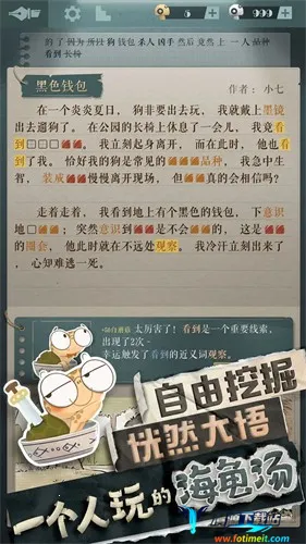 想玩烧脑的悬疑推理游戏吗?海龟蘑菇汤绝对能满足你!这是一款自由度超高的解谜游戏,没有预设问题和选项,全靠玩家自由探索。每个单元都有全新案件,你要根据证人口供、证物和案发现场布置来找线索,深挖故事真相。