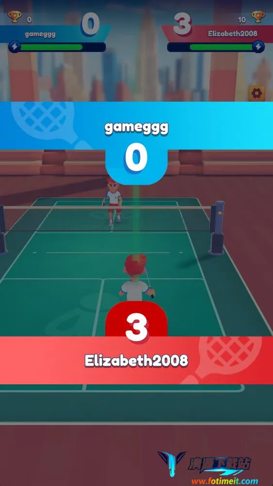 3、正式开始后向上滑动屏幕和向下滑动屏幕都可以击中将对手打过来的球。