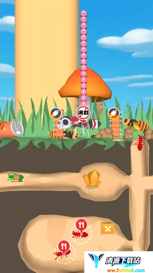 独特画风体验:采用3D卡通画风,轻微堆叠元素,以领队雄性蚂蚁为视角,原汁原味还原蚁群丰富忙碌的日常生活,带来沉浸式蚁民生活体验,还有拟真的蚂蚁模拟玩法。