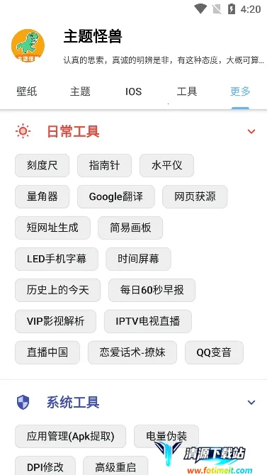 主题怪兽亮点满满。它支持动态壁纸制作,将倒计时等融入其中,增强互动性。能在线预览插件效果,快速选定心仪方案。强大的安卓变iOS功能,一键切换带来全新体验。提供丰富壁纸与主题资源,涵盖多样风格,可自由下载分享。操作教程简单易懂,助力快速掌握定制技巧。还支持个性化插件及组件设计,为桌面增添更多内容与功能,让手机界面焕然一新,轻松打造个性化风格。