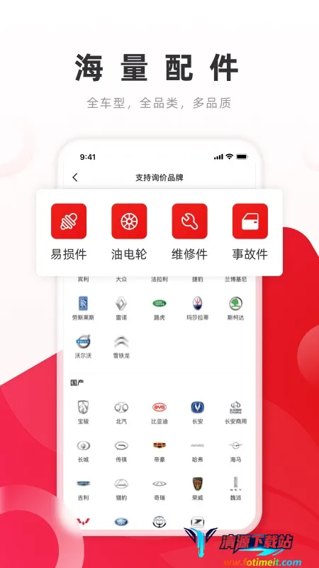 配件整合丰富:开思整合了200主流汽车品牌的配件,覆盖98%的市场需求,5大类清晰划分,包含原厂件、品牌件、拆车件等各类产品应有尽有。
