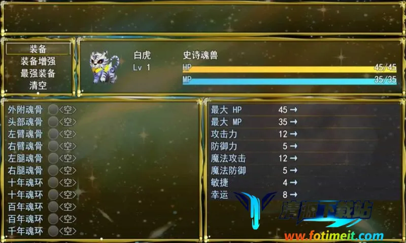开局挂鸡RPG安卓版是传统单机回合制RPG冒险游戏,可挂机升级。玩法丰富,能打造、镶嵌、强化装备,捕捉、养成魂兽,挑战秘境,还有随机事件。支持自动存档、一键存档,简单快乐任你刷。