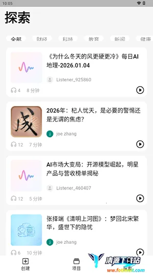你是否想制作属于自己的播客?ListenHub就能满足你的需求!它是一款超棒的播客制作类手机软件。当你有了播客内容想法,能直接在软件内挑选不同人声去尝试,选好声线还能试听,看看对话是否自然。平台有大量热门和新颖内容供你借鉴参考。它能把抽象概念用多种形式呈现,方便理解,深奥话题经它解释会更生动吸引人。编写文案时,它还能帮你整改设计。而且在这软件里,你能复制专属音色,很多音色虽通用,但加入自己声音后就独一无二,录制成功后可直接用,不用反复录音,操作简单又便捷,轻松就能创作出独特的播客作品啦!