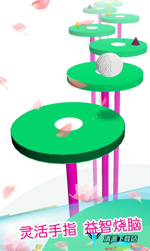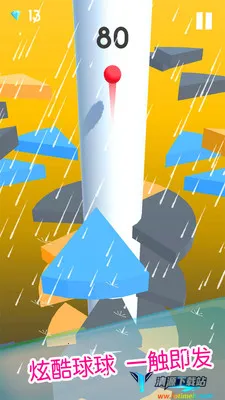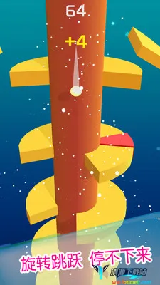 2. 操作简单易上手:只需要用手指滑动屏幕左右旋转柱子让小球下落,或者点击长按即可跳跃,单手就能轻松操作,对新手玩家十分友好。