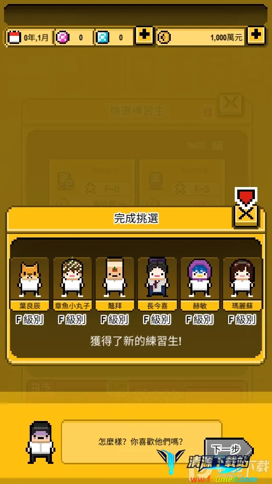 偶像天团养成记内购破解最新版是由柠檬酱工作室与608factory联合研发的模拟经营养成游戏。玩家扮演经纪人,从零组建偶像团体,安排训练、处理绯闻,提升实力开演唱会,目标是打造宇宙第一偶像天团。