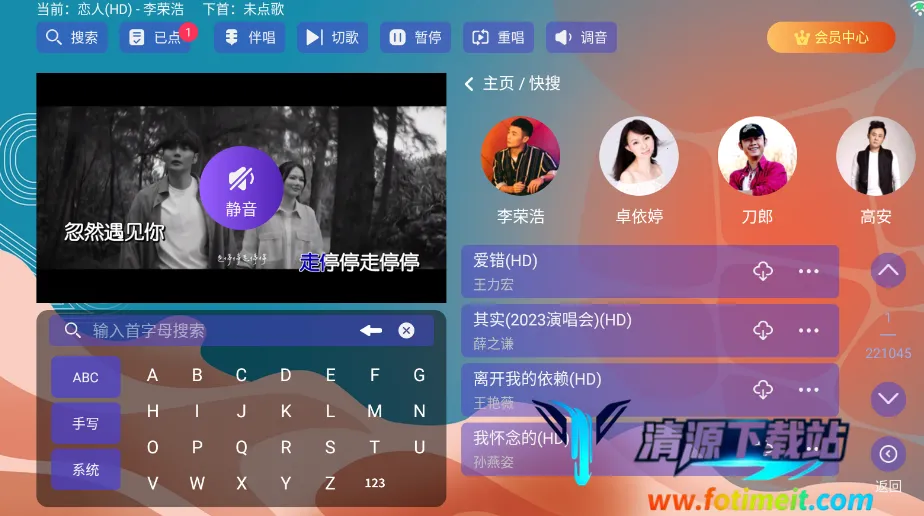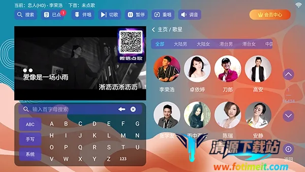 如果你想在家轻松享受KTV乐趣,麦浪KTV绝对是个好选择。它能让你一键安装后,在家就能畅享K歌体验。软件完全免费,有全球各国的热门与经典歌曲,无需注册登录,直接就能搜索想唱的歌,还有边下边唱模式,无需等待。它可在手机和电视等多种设备间无缝切换,智能推荐功能能根据听歌喜好推荐适合歌曲,解决唱什么的烦恼。多种主题模式可定制界面,生动歌词展示增添唱歌乐趣。使用时在本站下载安装,允许相关权限。打开后有多种点歌模式,还能查看榜单、输入首字母快速找歌,连接大屏幕就能开启K歌之旅。安装到电视上也不难,准备U盘按步骤操作即可。曲库丰富,有专业音效和智能评分,能自由调整音量和混响效果,经典与热门歌曲涵盖全且新歌实时更新,绝对能满足你的音乐口味。
