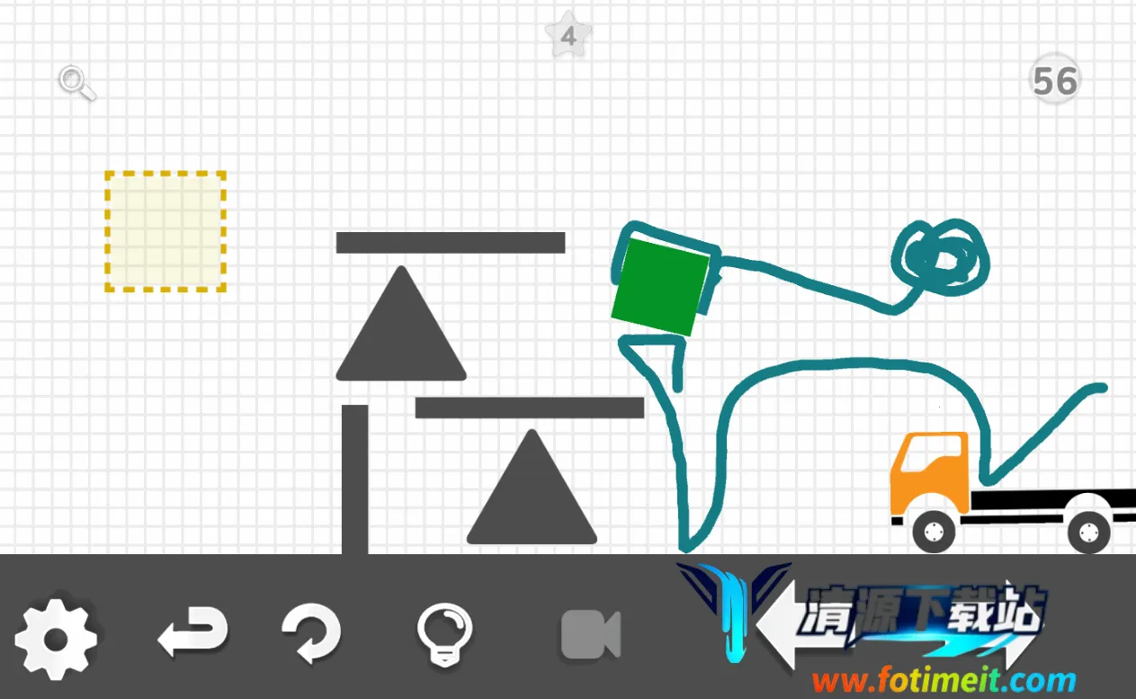 1、独特融合玩法:将经典物理引擎与自由涂鸦机制相融合,玩家操控卡车并借助画笔工具,在关卡中运送绿色方块至指定区域,玩法新颖独特。