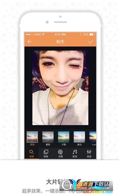 快手是一款备受欢迎的短视频软件。它有大片级电影滤镜,提升视频画质。专业音乐人打造官方配乐,适配各种心情,还能用自己音乐。有30种滤镜,新增美妆滤镜。支持7秒短视频拍摄,可分段拍,还有17秒长视频功能。能精准定位找同城人,了解身边动态。更新最热最搞笑短视频,让你看不够。在这里,你能记录生活、展示才艺,发现生活乐趣,找到全新的自己,人人都有机会上热门。