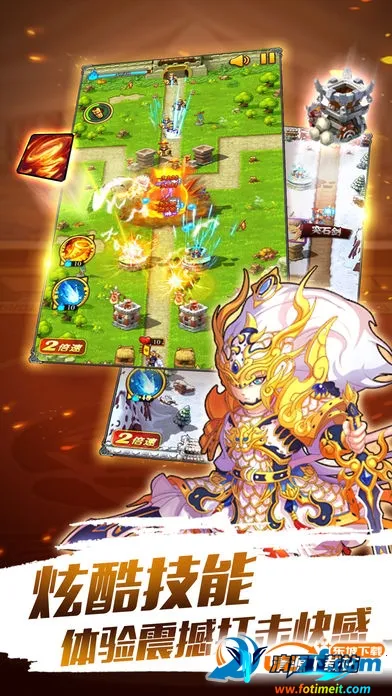 游戏中,q版造型演绎三国风云,大量史诗武将登场。策略多变,玩法深度丰富,技能绚丽,塔防节奏明快。车轮战模式还原武将单挑场景。副本种类多样,创新将缘系统,四大阵营齐聚跨服争霸。武将可深度培养,擂台切磋、皇城争霸等玩法也很精彩。