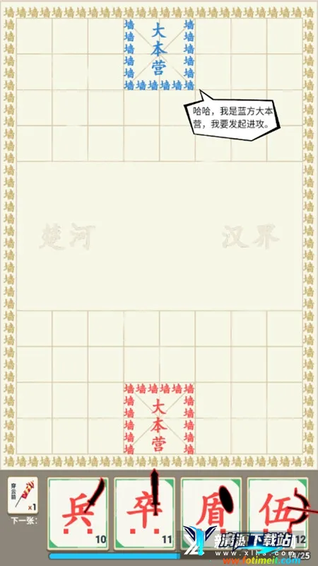 汉字战争这款游戏超有趣!它以汉字为背景,能满足你对独特策略对战的需求。游戏里有各种士兵类型,像兵、卒、盾、伍等,能在界面轻松获取并添加到战斗中。不同士兵搭配还有羁绊效果,提升攻防能力。你可以在游戏商店购买高级角色。这里支持能量查看,每种士兵所需能量不同。双方都有大本营,你既要防御自家大本营,又要优先摧毁对方的。大本营周围有墙体,得先攻击墙体才能进入。而且能随时查看大本营血量。游戏还有很多亮点,比如能获取增加士兵攻击力的称号,有符文系统,战斗还有奖励,大本营也能升级。玩法简单易上手,支持拖动士兵战斗,还有签到、关卡挑战等功能。快来下载汉字战争,在这场文字战斗中,巧妙组合汉字士兵,抵御敌人,书写你的胜利篇章!