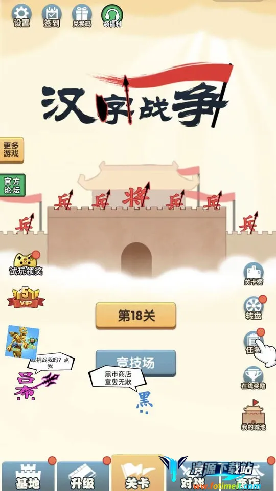 游戏中亮点多多。能获取“王侯将相宁有种乎”等特色称号,增加士兵攻击力,解锁高级称号可轻松击败敌人。支持符文系统,添加攻击符文,我方英雄拖动上场时有概率增加攻击力。战斗有奖励,不断战斗可获金币和经验。大本营能升级,用金币提升可增加血量。而且棋子按汉字意思设计,技能属性匹配,正确组合部队能产生奇效,士兵升级延续汉字含义,带来不同攻击性,给玩家全新策略对战体验。