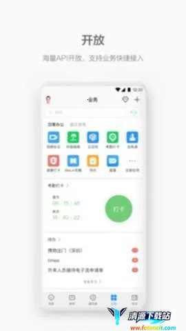 2. 便捷办理企业业务:通用办公应用开箱即用,开放200API可快速对接企业应用,还有优质第三方应用,满足各类企业不同业务需求。