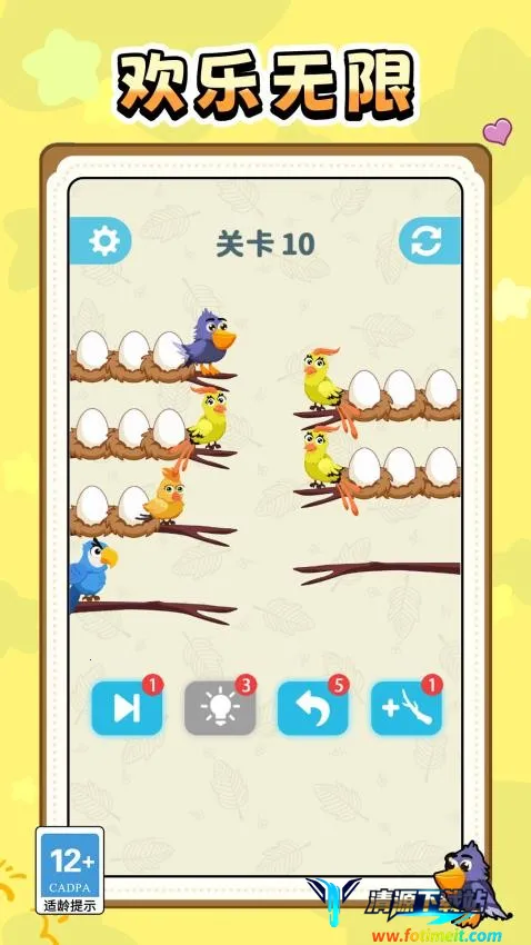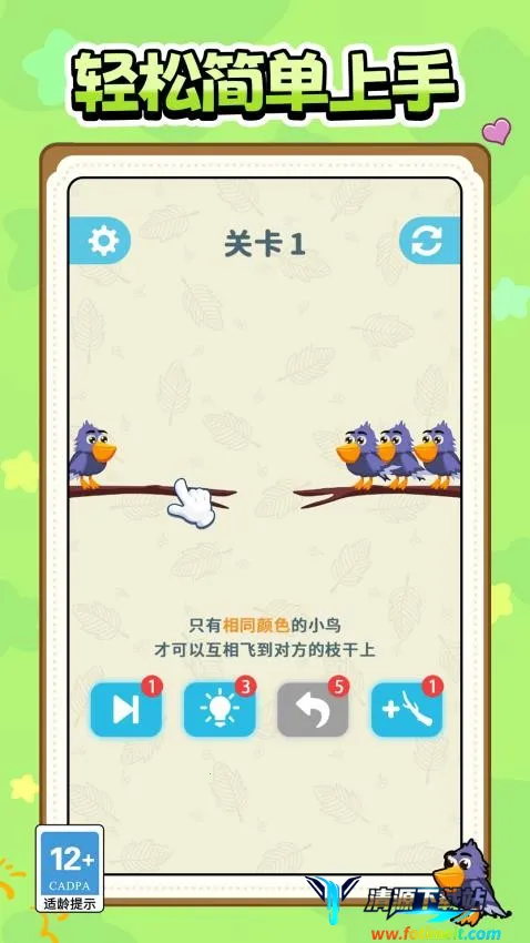消消玩到炸跳出传统消除游戏的网格框架,将色彩缤纷的小鸟安置在交错纵横的空树枝上。你需滑动单只小鸟,让其顺着树枝轨迹滚动,与同种类小鸟聚在一起。一旦三只及以上相同小鸟连成一片,它们就会飞走,带来畅爽消除体验。游戏中,你将踏入由巨型魔法树搭建的世界,关卡别具一格,后期枝干结构复杂如迷宫,考验玩家空间想象力和多步规划能力,挑战性十足,能让玩家感受不同的游戏乐趣。