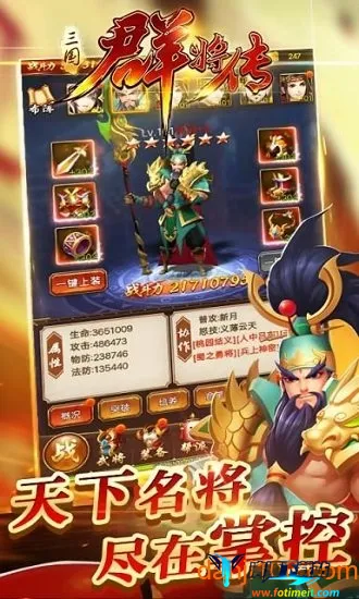3、独特武将进化系统:使阵容搭配有丰富变化,可自由组合名将团队,带来多样策略体验。