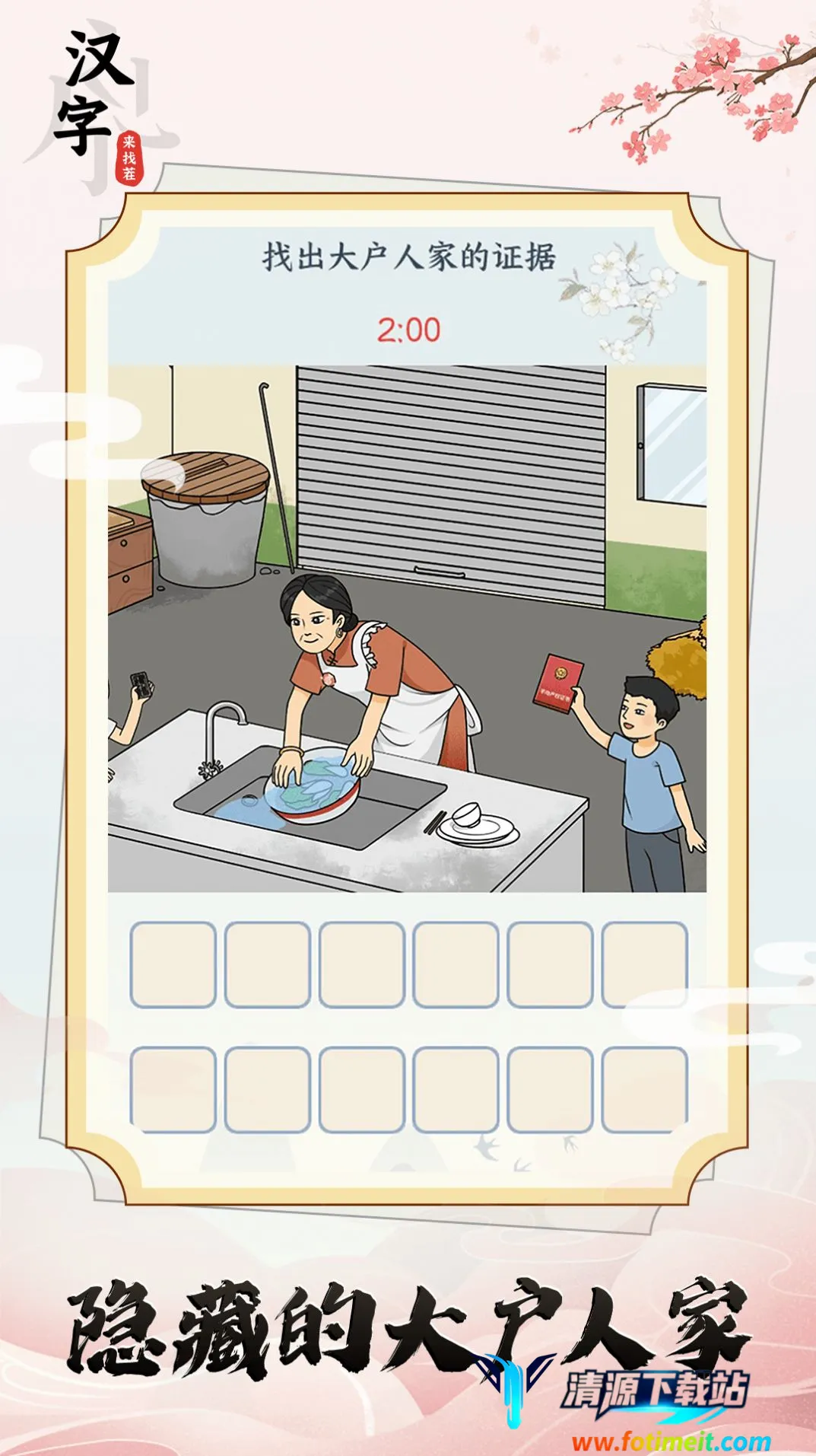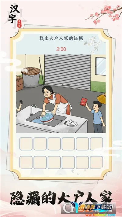 汉字来找茬是一款休闲益智游戏,将帮小姐姐取暖玩法与八十年代找茬结合。有解谜闯关、关卡找茬等亮点,玩法多样,考验汉字功底与网络热点熟悉度,谜题精心设计,适合碎片时间玩,还有丰富攻略。
