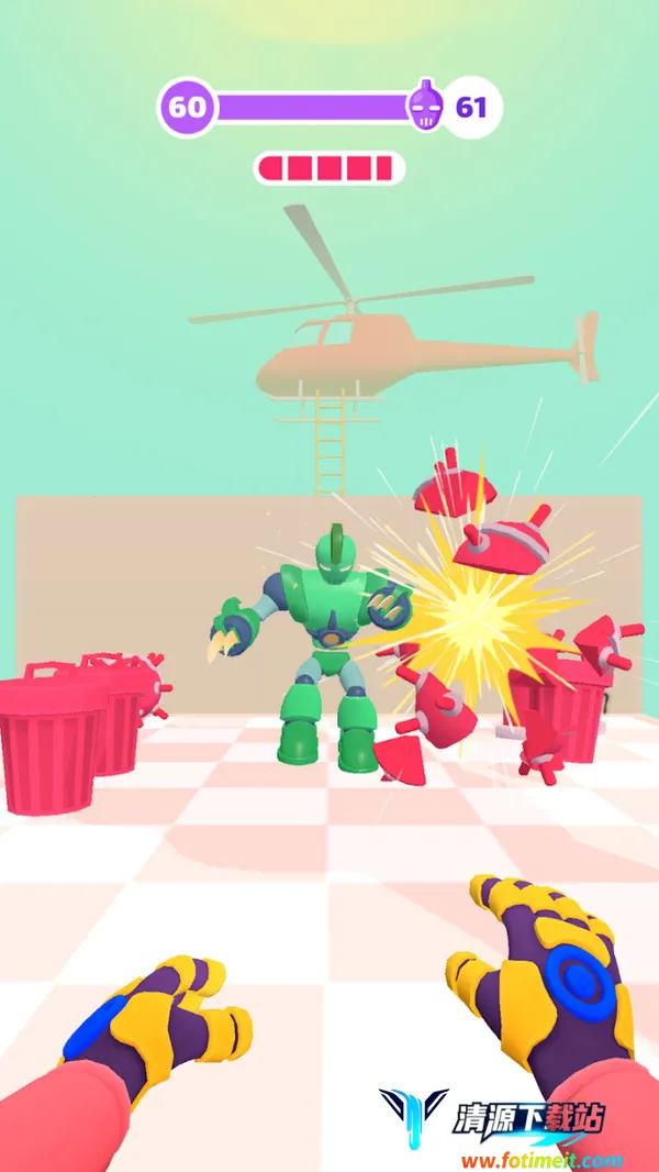 这款游戏给玩家带来了独特的体验。操作上,单指就能控制磁性绳索,完成捆绑、抛掷和引爆等动作,简单易上手,却又不失策略深度。游戏场景丰富多样,高楼屋顶、机械工厂、街道等立体场景打造出强烈的高速跑酷感。物理互动效果出色,敌人被捆绑抛掷和撞击时动作魔性又真实,沉浸感十足。玩家可随意利用场景内道具,创造丰富的连锁爆炸和破坏效果,形成自己的战斗策略。面对各种机械首领,配合场景元素构成复杂战斗局面,连锁破坏与策略结合,极大提升了操作感和成就感,让人在游戏中收获无限乐趣。
