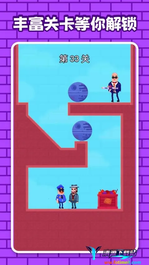这款游戏充满趣味。游戏的关卡设计丰富多样,每一关都有新挑战。地形多变,增加了游戏的不确定性,让玩家时刻保持新鲜感。在追踪坏蛋的过程中,玩家要留意炸药位置、武器作用等诸多元素,充分考验逻辑思维。比如,要根据坏蛋位置和平衡信息确定推动圆形物品的时机,精准启动炸药机关。随着关卡推进,坏蛋逃跑路线愈发复杂,速度也加快,这就需要玩家灵活应对,解锁抓捕道具来增加追逃的爽感。整体游戏过程紧张刺激,玩家能沉浸在追逃的乐趣中,不断挑战自我,寻找最佳通关方式,享受解决各种难题带来的成就感。