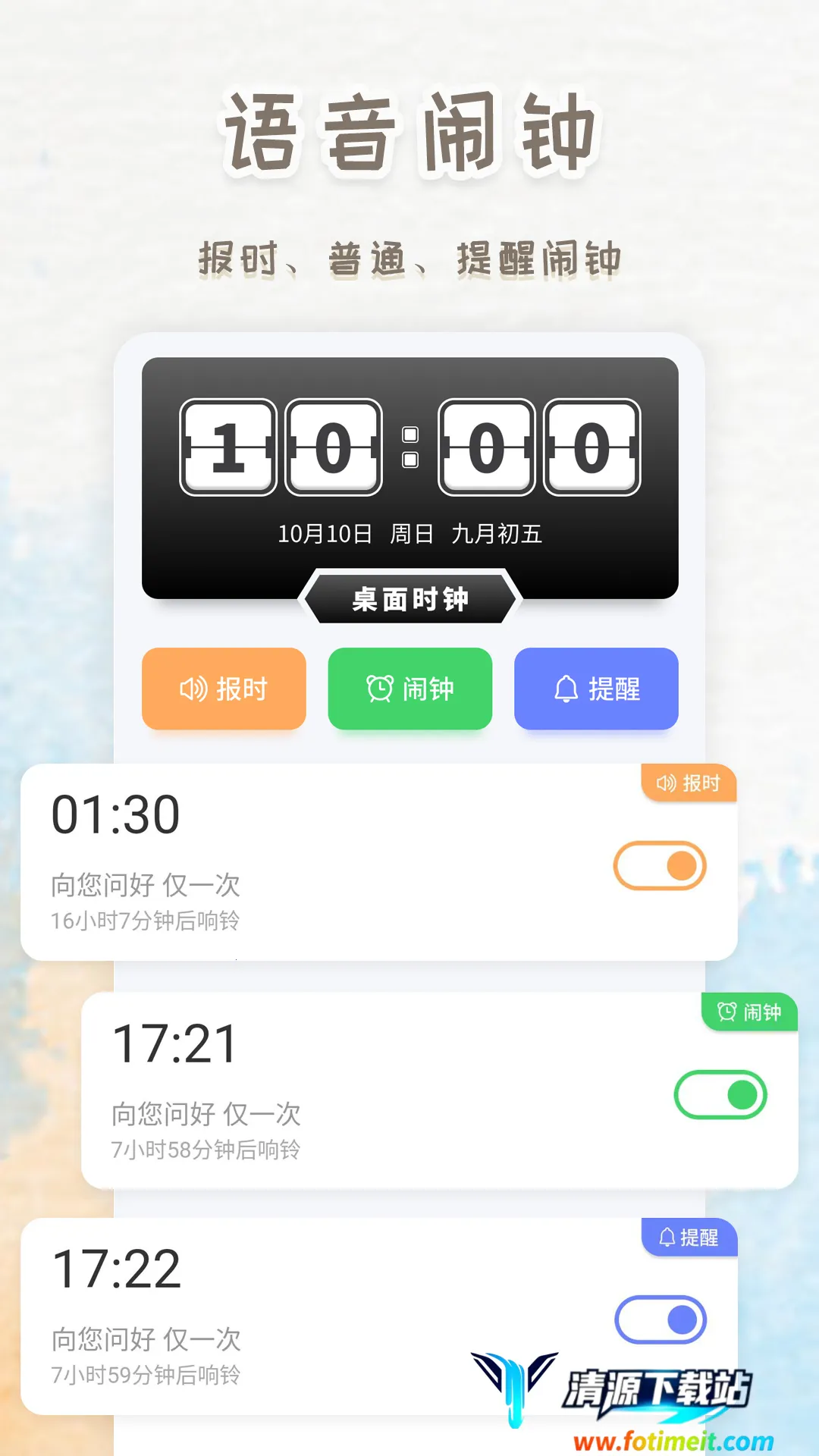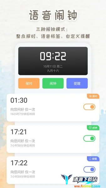 2. 语音报时与智能提醒功能:可整点自动播报时间,也能通过自定义语音提醒当前时间,随时掌握时间动态,使时间规划更高效且贴合个人节奏。