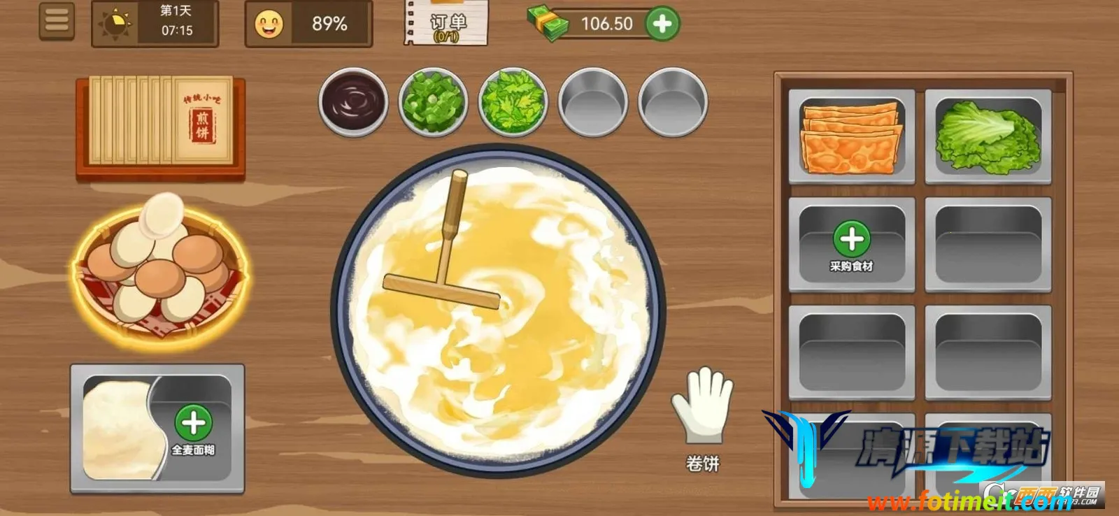 2、丰富多样的煎饼制作:游戏提供数十种风味煎饼任玩家搭配,从经典到创新口味应有尽有。玩家既要控制食材成本,又要精准把握火候和佐料添加量,制作出满足顾客刁钻口味的煎饼,解锁新食材,丰富食谱,体验多样的美食制作过程。