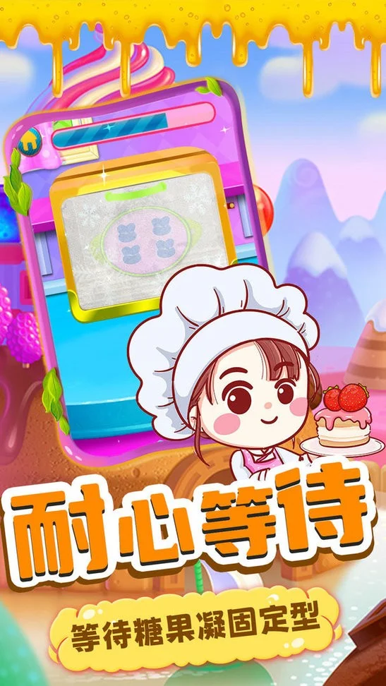 3. 有全新卡通画面,解锁不同游戏场景,每个场景开启各具特色的趣味模式,完成自己的糖果制作,迎接更多挑战。