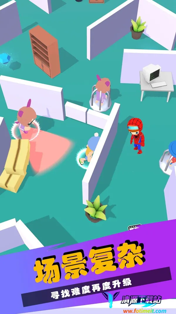 3. 整体玩法偏向休闲化,在捉迷藏的核心玩法中完成各种任务,轻松享受游戏乐趣。