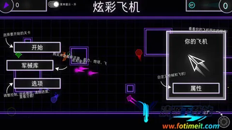 炫彩飞机是一款超刺激的街机射击手游!它以传统纸飞机为灵感,打造出小巧迅猛的战机。游戏里有21个风格各异的竞技场,35种形态各异的敌人,8种独特武器,6座各具特色的防御塔,7种特殊能力助你逆转战局。深度自定义功能,能让你全方位打造专属战机。基本控制超简单,左操作杆移飞机,右操作杆瞄准射击,还能自由切换武器。击杀敌人可充能,收集满就能用特殊能力得分。游戏场景酷炫,霓虹色彩带来视觉盛宴。关卡丰富,玩法多样,能考验你的反应能力与手速。无需高操作手法,弹药无限,让你尽情闯关冲击记录。快来体验这场充满乐趣的射击对决,享受躲避障碍、击败敌人的快感,解锁大量道具和战机,提升实力,开启精彩冒险旅程!