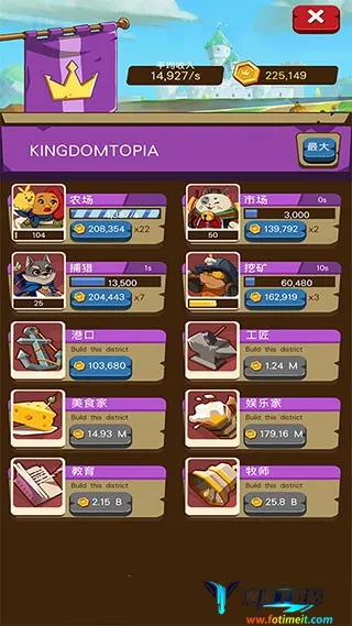 放置动物王国Kingdomtopia是休闲放置类养成游戏。玩家化身王子重建被攻陷的动物王国,兼顾财政、产业与外敌。通过策略建设、资源管理与挂机收益打造专属王国,操作极简,画风清新,成长路径清晰。
