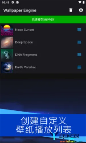 Wallpaperengine亮点众多。它有海量精美壁纸资源,涵盖2D、3D等多种类型,风格多样,满足各类审美。**纯净无打扰**,无隐藏费用、广告植入及用户行为追踪与数据收集,全方位守护隐私安全。支持无缝跨端传输,能将电脑端动态场景与视频壁纸轻松同步至安卓设备。多格式壁纸导入功能强大,本地多种格式文件均可导入设为桌面。智能播放列表可创建个性化壁纸轮播,多种播放模式让桌面更富变化趣味,给用户带来出色的使用体验。