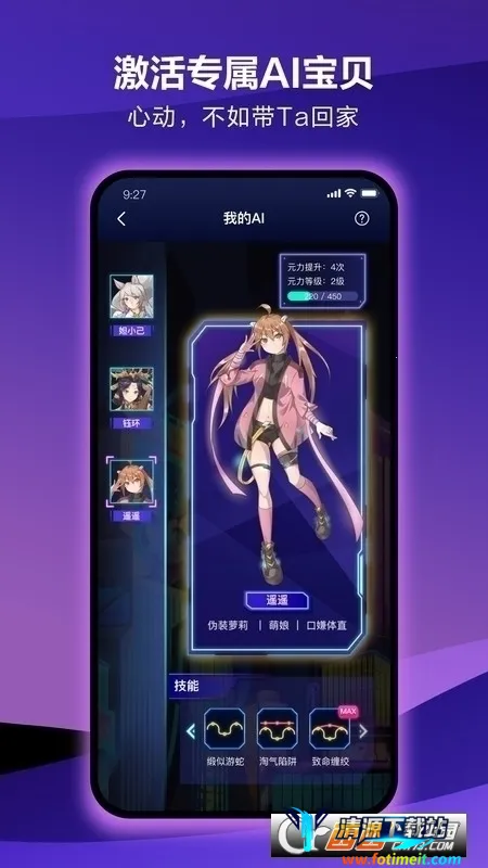 1、虚拟伴侣互动:通过拟人化IP角色提供虚拟伴侣互动体验,能与角色情感交流,大大增加使用趣味性。