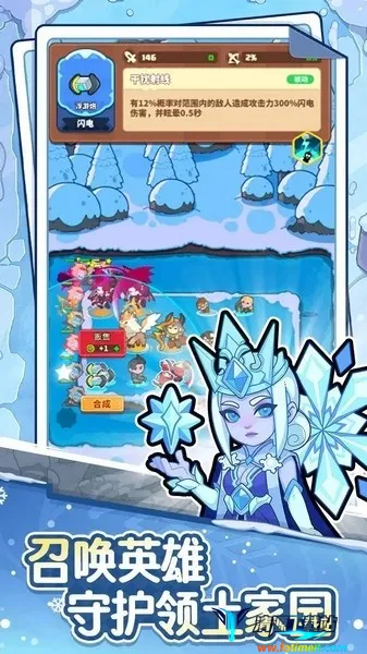 游戏中,玩家要召唤小兵对抗敌人,每波都有不同怪物需消灭。小兵三个相同可合成升级,品质越高战斗力越强。还有各种强化效果供选择购买,击败怪物能获金币来强化英雄和小兵。在这里,你能体验合成与塔防结合的策略乐趣,感受从小村庄发展成强大城堡的成长历程,利用冬季资源发展经济,探索冰雪世界的秘密,享受休闲与策略完美结合的全新体验。