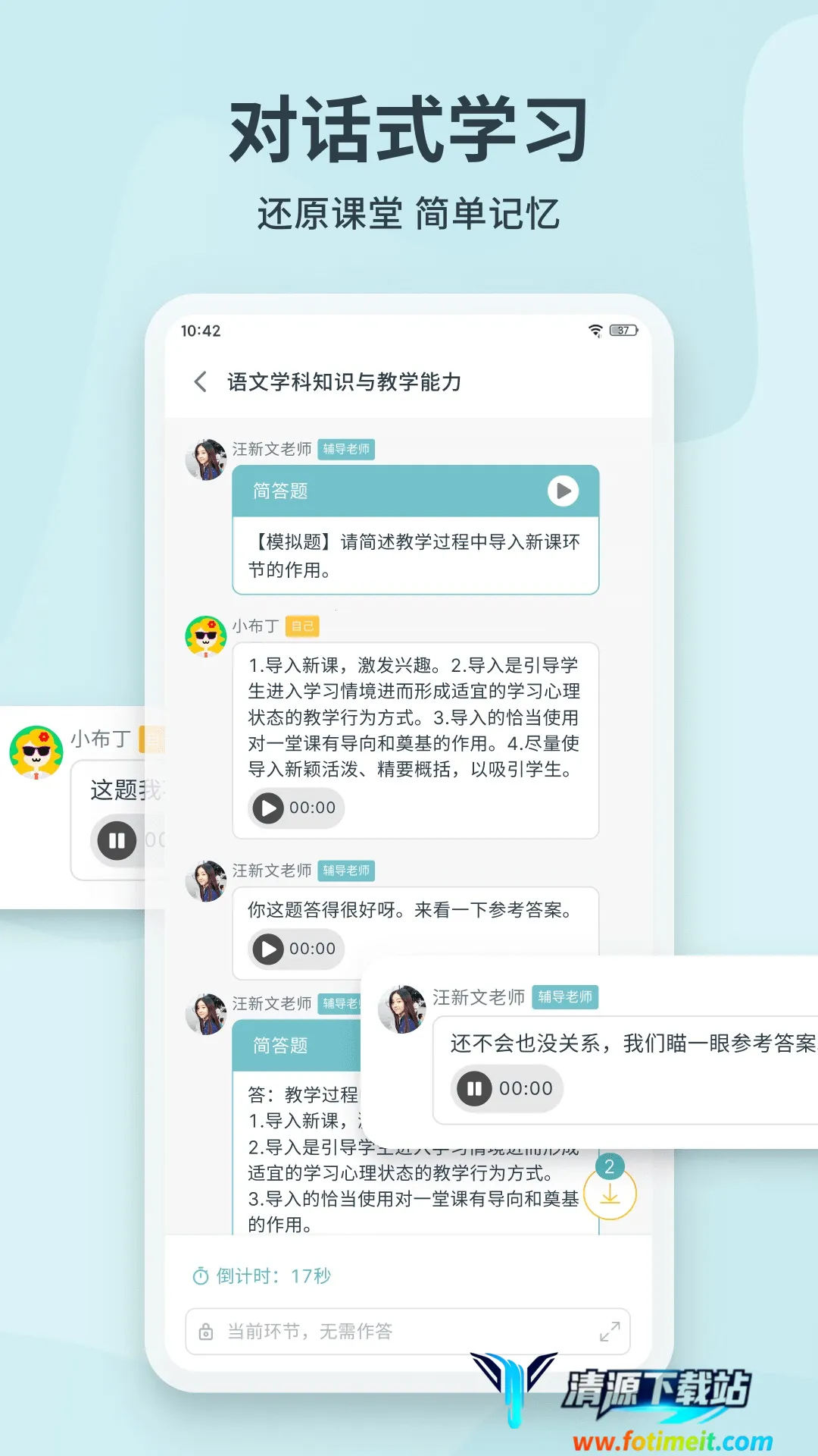 靠岸是一款专注教师资格证备考的学习应用,采用对话式学习模式,AI老师引导记忆与练习。有海量离线题库,资深专家甄选真题总结知识点,还有真人结伴学习、可视化报告等功能,助用户精准提分。