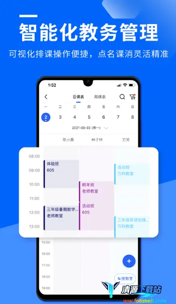 它能助力学校管理层更好了解运营状况,支持数据可视化统计分析。老师可自定义排课重复规则,适配各种授课模式,排课轻松。课表呈现方式多样,多视图展示每日及每月课表,方便查看。还提供多模块管理,实现信息化管理与数字化服务,提高管理效率、优化服务质量、提升师生体验,应对教育信息化挑战。家校沟通便捷,能随时解决学生问题,是教育机构的得力帮手。