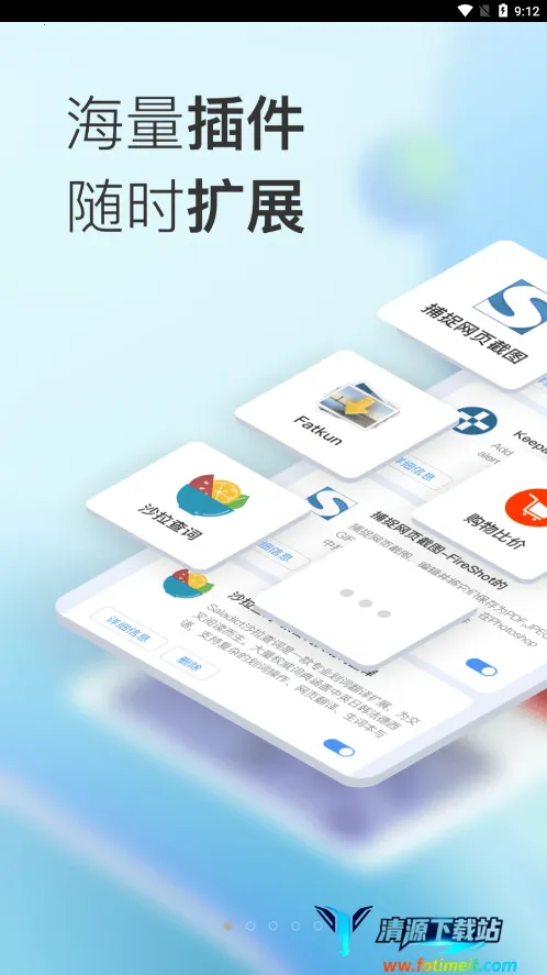 1. 海量扩展:可根据个人喜好随意添加或移除插件,拥有全球速递、购物比价、沙拉搜索、法特库等海量浏览器扩展,丰富的插件组合,重新定义专属个性化浏览器。