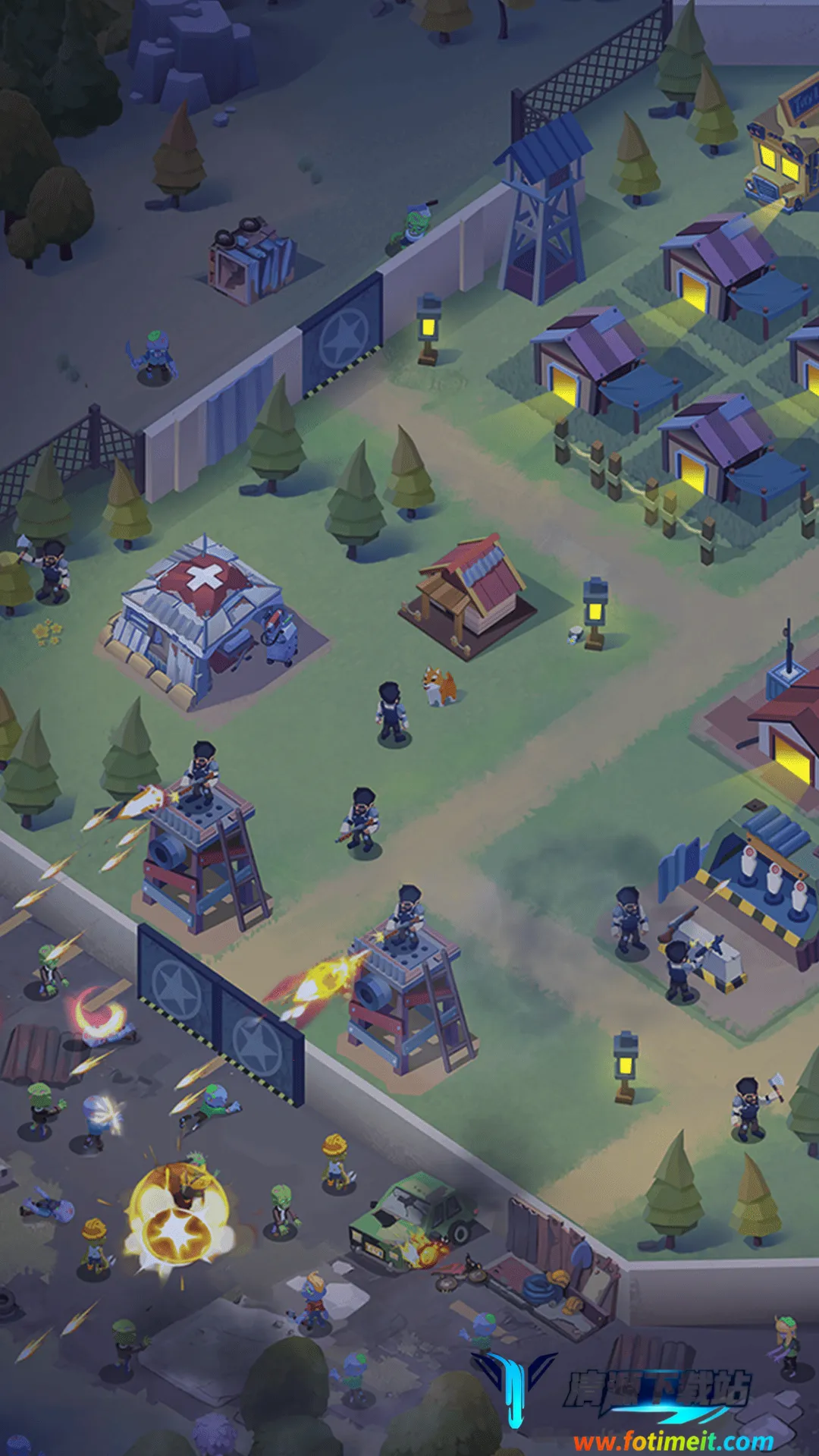3、丰富的策略与管理元素:游戏融合多种策略元素,玩家要像领导者一样收集资源、建造设施、训练士兵,全方位管理营地以抵御僵尸入侵。无论是规划防线、安排防御设施位置,还是应对突发情况,都考验着玩家的策略思维和决策能力。